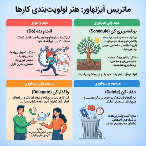 با استفاده از این ماتریس، افراد میتوانند اولویتهای خود را به درستی شناسایی کنند.